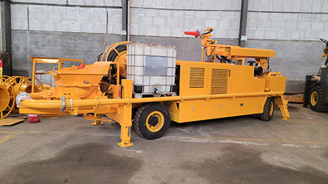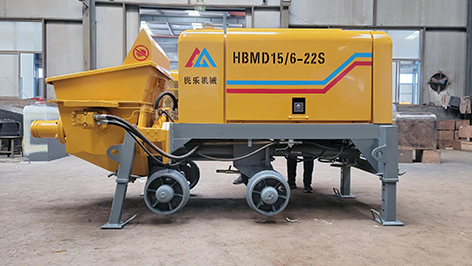 工作原理:當液壓系統(tǒng)壓力油進入一主油缸時,活塞桿伸出,同時通過密封回路連通管的壓力油使另一活塞桿回縮。與主油缸活塞桿相連的混凝土輸送活塞回縮時在輸送缸內(nèi)產(chǎn)生自吸作用,料斗中的混凝土在大氣壓力作用和攪拌葉片的助推作用下通過滑閥吸入口被吸入輸送缸。同時,另一主油缸在油壓的作用下,推動主油缸的活塞桿伸出并同時推動混凝土活塞壓出輸送缸中的混凝土,通過滑閥輸送口Y字管進入混凝土輸送管。動作完成后,系統(tǒng)自動換向使壓力油進入另一主油缸,完成另一次不同輸送缸的吸、送行程。如此反復(fù),料斗里的混凝土就被吸入和壓送出輸送缸,通過Y型管和出口連接的管道到達作業(yè)點,完成泵送作業(yè)。