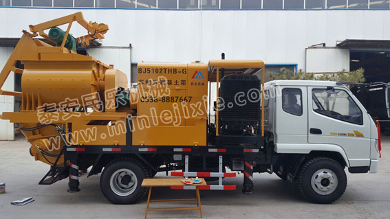 ① 車載泵沒有攪拌系統(tǒng),需要配置滾筒攪拌機(jī)或強(qiáng)制攪拌機(jī),且需要將攪拌機(jī)運(yùn)輸?shù)绞┕すさ?,車載泵開到施工地點(diǎn),再讓車載泵與攪拌機(jī)對(duì)接好,運(yùn)輸、裝卸成本高;